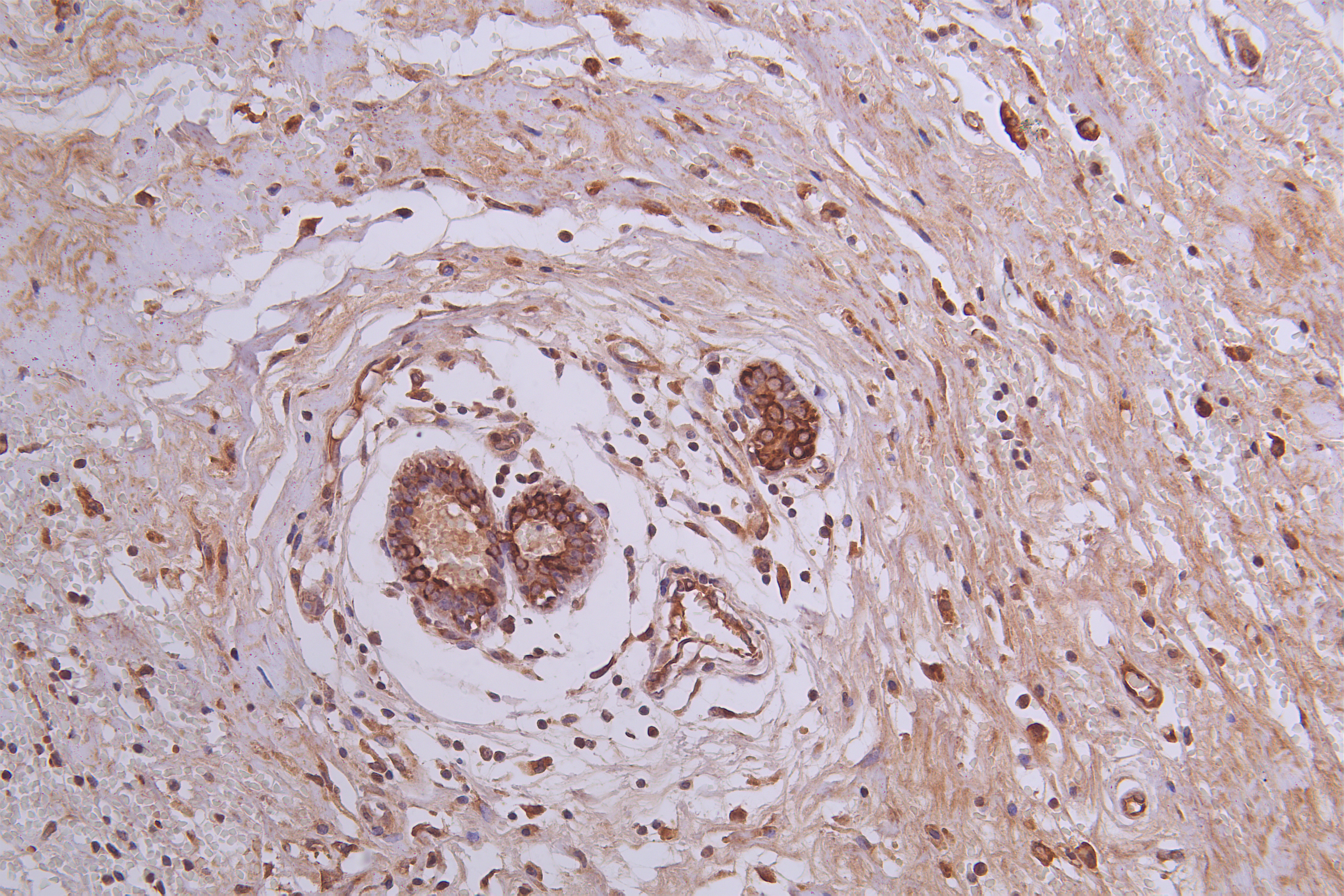 Immunohistochemistry of paraffin-embedded human Breast cancer tissue using CSB-PA868369ESR1HU at dilution of 1:50