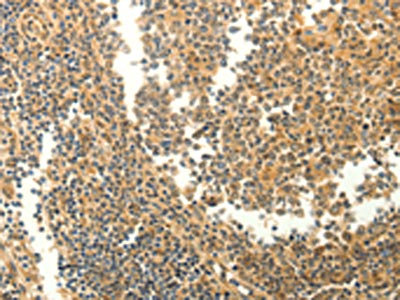 The image on the left is immunohistochemistry of paraffin-embedded Human tonsil tissue using CSB-PA665912(MYH7 Antibody) at dilution 1/20, on the right is treated with fusion protein. (Original magnification: ×200)