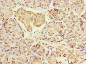 Immunohistochemistry of paraffin-embedded human pancreatic tissue using CSB-PA889545ESR1HU at dilution of 1:100