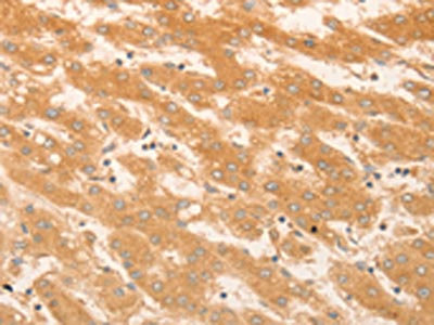 The image on the left is immunohistochemistry of paraffin-embedded Human liver cancer tissue using CSB-PA565139(NAP1L1 Antibody) at dilution 1/50, on the right is treated with fusion protein. (Original magnification: ×200)
