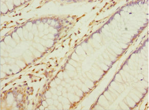 Immunohistochemistry of paraffin-embedded human colon cancer using CSB-PA860352DSR1HU at dilution of 1:100