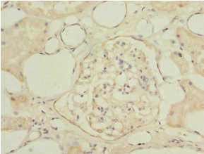 Immunohistochemistry of paraffin-embedded human kidney tissue using CSB-PA860352DSR1HU at dilution of 1:100