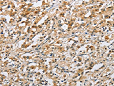 The image on the left is immunohistochemistry of paraffin-embedded Human thyroid cancer tissue using CSB-PA244536(NAPSA Antibody) at dilution 1/40, on the right is treated with fusion protein. (Original magnification: ×200)