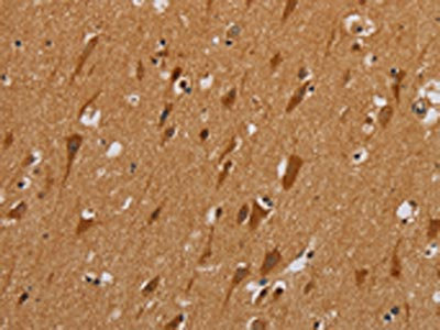 The image is immunohistochemistry of paraffin-embedded Human brain tissue using CSB-PA226934(NDUFAF1 Antibody) at dilution 1/25. (Original magnification: ×200)