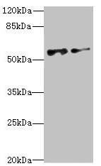 Predicted band size: 58, 56 kDa