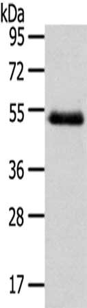 Gel: 8%SDS-PAGE,Lysate: 40 μg,,Primary antibody: CSB-PA995384(NR2F2 Antibody) at dilution 1/200 dilution,Secondary antibody: Goat anti rabbit IgG at 1/8000 dilution,Exposure time: 1 minute