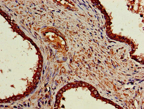 Immunohistochemistry of paraffin-embedded human prostate cancer using CSB-PA016066LA01HU at dilution of 1:100