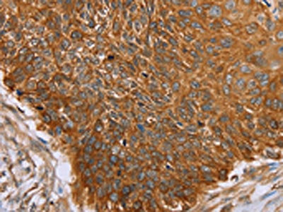 The image on the left is immunohistochemistry of paraffin-embedded Human esophagus cancer tissue using CSB-PA921138(PAICS Antibody) at dilution 1/50, on the right is treated with fusion protein. (Original magnification: ×200)