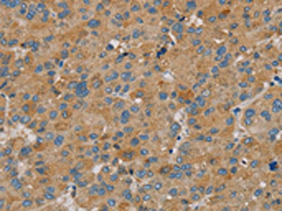 The image on the left is immunohistochemistry of paraffin-embedded Human liver cancer tissue using CSB-PA193064(PARL Antibody) at dilution 1/20, on the right is treated with fusion protein. (Original magnification: ×200)