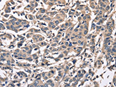 The image on the left is immunohistochemistry of paraffin-embedded Human breast cancer tissue using CSB-PA955522(PEBP1 Antibody) at dilution 1/50, on the right is treated with fusion protein. (Original magnification: ×200)