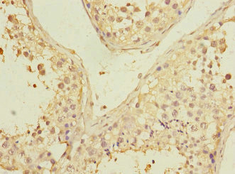 Immunohistochemistry of paraffin-embedded human testis tissue using CSB-PA017835ESR1HU at dilution of 1:100