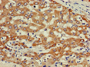 Immunohistochemistry of paraffin-embedded human liver cancer using CSB-PA018005LA01HU at dilution of 1:100