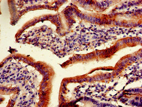 Immunohistochemistry of paraffin-embedded human small intestine tissue using CSB-PA860349LA01HU at dilution of 1:100