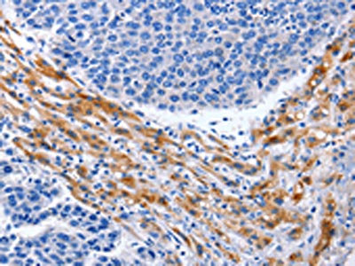 The image on the left is immunohistochemistry of paraffin-embedded Human stomach cancer tissue using CSB-PA102683(PRKAB1 Antibody) at dilution 1/15, on the right is treated with synthetic peptide. (Original magnification: ×200)