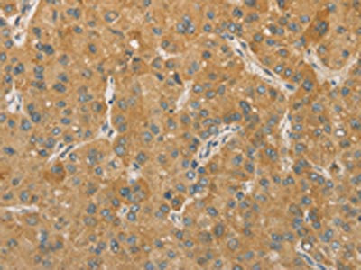 The image on the left is immunohistochemistry of paraffin-embedded Human liver cancer tissue using CSB-PA148761(PRPSAP1 Antibody) at dilution 1/80, on the right is treated with fusion protein. (Original magnification: ×200)