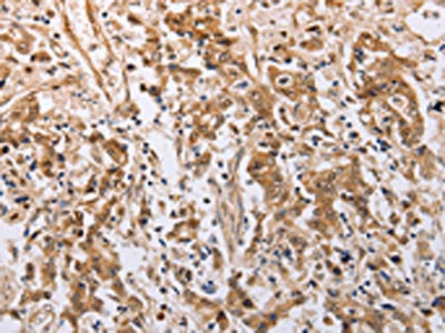 The image on the left is immunohistochemistry of paraffin-embedded Human gastric cancer tissue using CSB-PA252995(PSMD3 Antibody) at dilution 1/25, on the right is treated with fusion protein. (Original magnification: ×200)