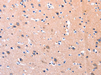 The image on the left is immunohistochemistry of paraffin-embedded Human brain tissue using CSB-PA554741(PTK2 Antibody) at dilution 1/75, on the right is treated with synthetic peptide. (Original magnification: ×200)