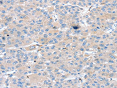 The image on the left is immunohistochemistry of paraffin-embedded Human liver cancer tissue using CSB-PA441852(PTX3 Antibody) at dilution 1/25, on the right is treated with synthetic peptide. (Original magnification: ×200)