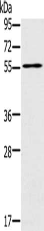 Gel: 8%SDS-PAGE, Lysate: 40 μg, Lane: Mouse intestinum tenue tissue, Primary antibody: CSB-PA565844(PUS10 Antibody) at dilution 1/200, Secondary antibody: Goat anti rabbit IgG at 1/8000 dilution, Exposure time: 3 seconds