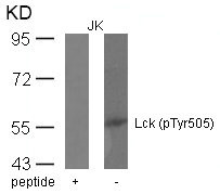 免疫原:Peptide sequence around phosphorylation site of tyrosine 505 (G-Q-Y(p)-Q-P) derived from Human Lck.