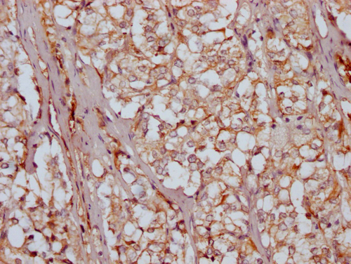 IHC image of CSB-PA732918LA01HU diluted at 1:200 and staining in paraffin-embedded human adrenal gland tissue performed on a Leica BondTM system. After dewaxing and hydration, antigen retrieval was mediated by high pressure in a citrate buffer (pH 6.0). Section was blocked with 10% normal goat serum 30min at RT. Then primary antibody (1% BSA) was incubated at 4°C overnight. The primary is detected by a Goat anti-rabbit IgG labeled by HRP and visualized using 0.05% DAB.