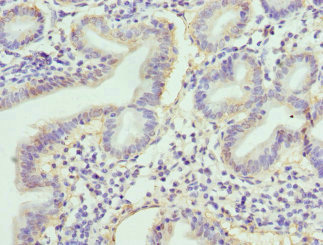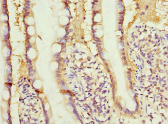 Immunohistochemistry of paraffin-embedded human small intestine tissue using CSB-PA019481DSR1HU at dilution of 1:100
