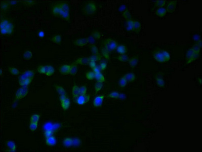 Immunofluorescent analysis of 293T cells using CSB-PA019567LA01HU at dilution of 1:100 and Alexa Fluor 488-congugated AffiniPure Goat Anti-Rabbit IgG(H+L)