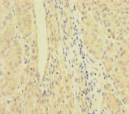 Immunohistochemistry of paraffin-embedded human liver cancer using CSB-PA687456LA01HU at dilution of 1:100