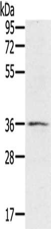 Gel: 8%SDS-PAGE, Lysate: 40 μg, Lane: TM4 cells, Primary antibody: CSB-PA253689(RNF144B Antibody) at dilution 1/400, Secondary antibody: Goat anti rabbit IgG at 1/8000 dilution, Exposure time: 3 minutes