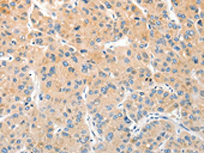 The image on the left is immunohistochemistry of paraffin-embedded Human liver cancer tissue using CSB-PA233350(RPN1 Antibody) at dilution 1/30, on the right is treated with fusion protein. (Original magnification: ×200)