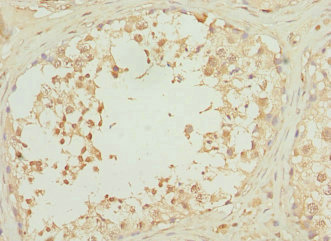 Immunohistochemistry of paraffin-embedded human testis tissue using CSB-PA020474ESR1HU at dilution of 1:100