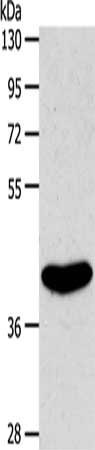Gel: 10%SDS-PAGE, Lysate: 50 μg, Lane: Rat kidney tissue, Primary antibody: CSB-PA136242(S1PR4 Antibody) at dilution 1/800, Secondary antibody: Goat anti rabbit IgG at 1/8000 dilution, Exposure time: 20 seconds