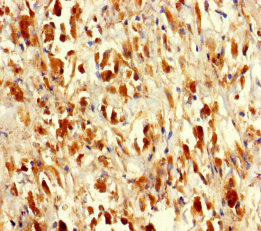 Immunohistochemistry of paraffin-embedded human melanoma using CSB-PA04145A0Rb at dilution of 1:100