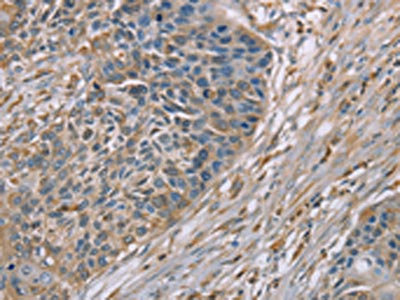 The image on the left is immunohistochemistry of paraffin-embedded Human esophagus cancer tissue using CSB-PA908597(SCN1B Antibody) at dilution 1/35, on the right is treated with synthetic peptide. (Original magnification: ×200)