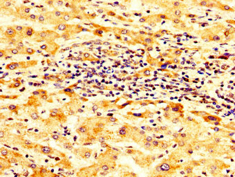 IHC image of CSB-PA020849LA01HU diluted at 1:300 and staining in paraffin-embedded human liver cancer performed on a Leica BondTM system. After dewaxing and hydration, antigen retrieval was mediated by high pressure in a citrate buffer (pH 6.0). Section was blocked with 10% normal goat serum 30min at RT. Then primary antibody (1% BSA) was incubated at 4°C overnight. The primary is detected by a biotinylated secondary antibody and visualized using an HRP conjugated SP system.