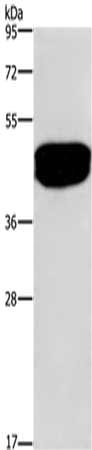 Gel: 8%SDS-PAGE,Lysate: 40 μg,,Primary antibody: CSB-PA037904(SDCCAG3 Antibody) at dilution 1/500 dilution,Secondary antibody: Goat anti rabbit IgG at 1/8000 dilution,Exposure time: 20 seconds