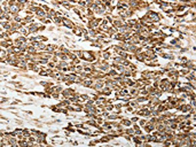 The image on the left is immunohistochemistry of paraffin-embedded Human esophagus cancer tissue using CSB-PA775739(SELE Antibody) at dilution 1/30, on the right is treated with fusion protein. (Original magnification: ×200)