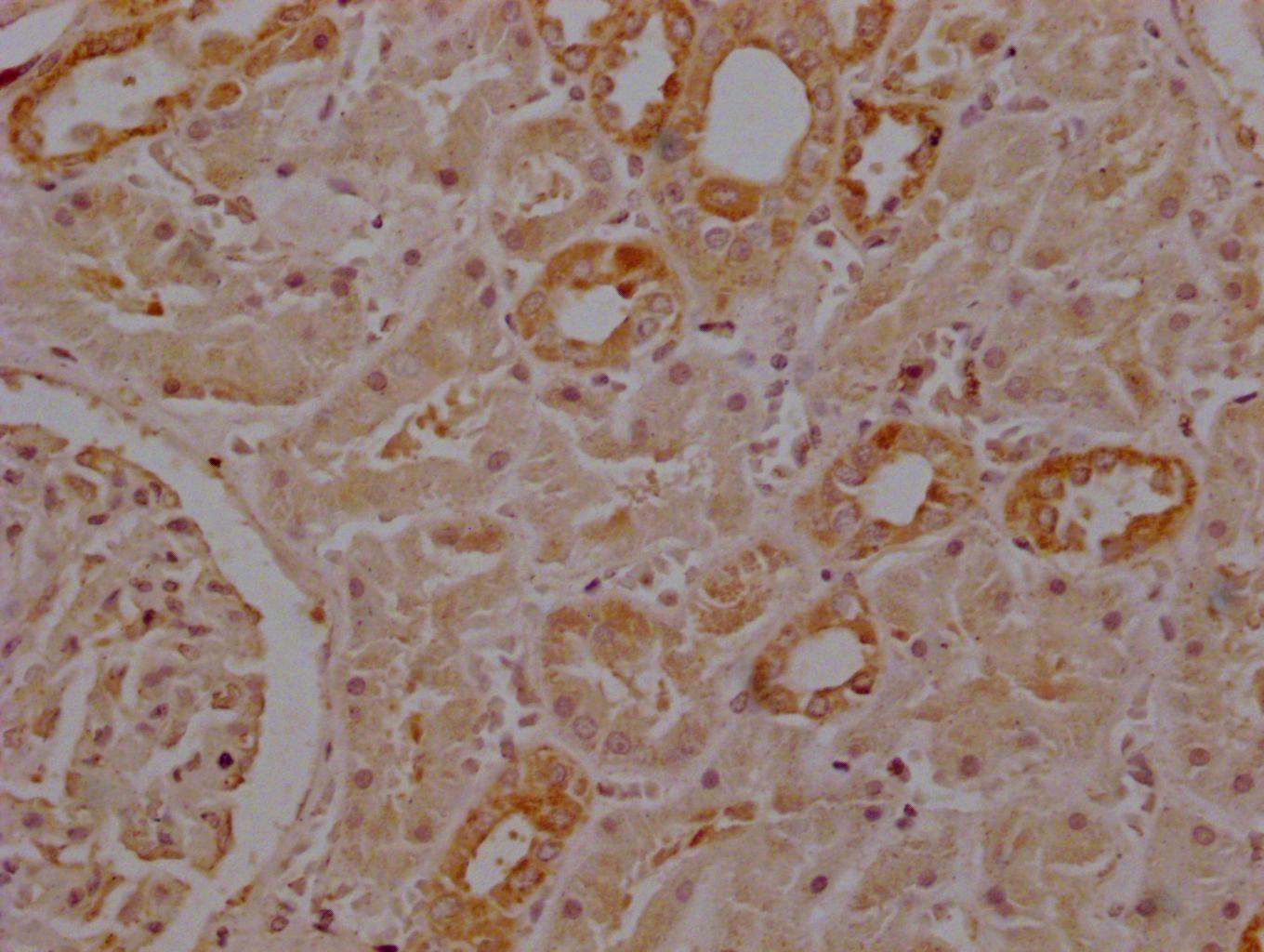 Immunohistochemistry of paraffin-embedded human kidney tissue using CSB-PA021018LA01HU at dilution of 1:100