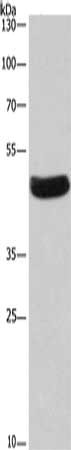 Gel: 8%SDS-PAGE, Lysate: 40 μg, Lane: Hela cells, Primary antibody: CSB-PA199577(SEPT7 Antibody) at dilution 1/380, Secondary antibody: Goat anti rabbit IgG at 1/8000 dilution, Exposure time: 30 seconds