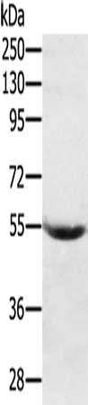 Gel: 8%SDS-PAGE, Lysate: 40 μg, Lane: Human plasma tissue, Primary antibody: CSB-PA258225(SERPING1 Antibody) at dilution 1/200, Secondary antibody: Goat anti rabbit IgG at 1/8000 dilution, Exposure time: 10 minutes