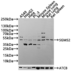 This high-purity antibody has been shown to react with both human and rat samples and has been extensively validated for use in various applications, such as ELISA, WB, IF, and IHC. These applications allow for the detection of the presence and quantity of SGMS2 protein, visualization of its distribution and localization, and identification.