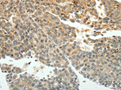 The image on the left is immunohistochemistry of paraffin-embedded Human liver cancer tissue using CSB-PA100396(SIRT3 Antibody) at dilution 1/15, on the right is treated with fusion protein. (Original magnification: ×200)