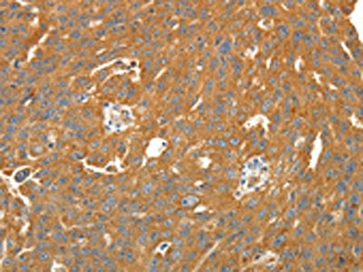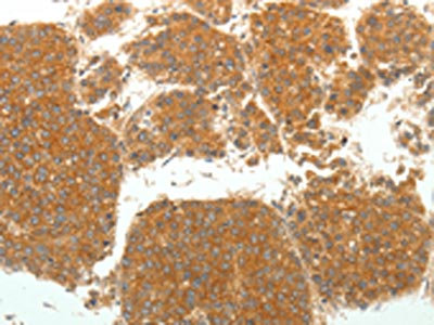 The image on the left is immunohistochemistry of paraffin-embedded Human liver cancer tissue using CSB-PA201090(SIRT4 Antibody) at dilution 1/25. (Original magnification: ×200)