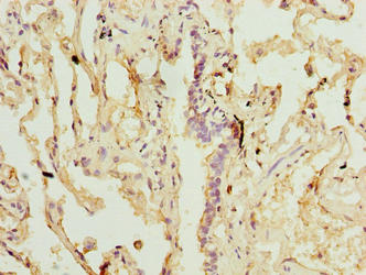 Immunohistochemistry of paraffin-embedded human lung tissue using CSB-PA613387LA01HU at dilution of 1:100