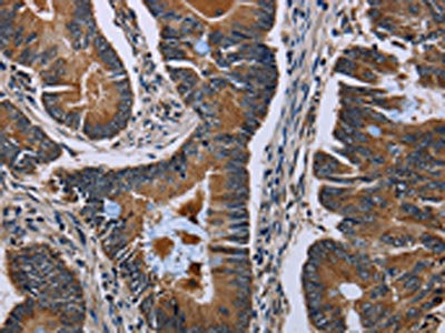 The image on the left is immunohistochemistry of paraffin-embedded Human colon cancer tissue using CSB-PA942193(SLC1A6 Antibody) at dilution 1/40, on the right is treated with synthetic peptide. (Original magnification: ×200)