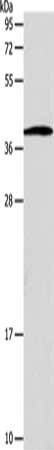 Gel: 12%SDS-PAGE, Lysate: 40 μg, Lane: Human lymphoma tissue, Primary antibody: CSB-PA061492(SLC25A11 Antibody) at dilution 1/600, Secondary antibody: Goat anti rabbit IgG at 1/8000 dilution, Exposure time: 20 seconds