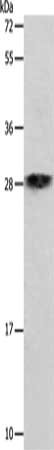 Gel: 10%SDS-PAGE, Lysate: 40 μg, Lane: Human lymphoma tissue, Primary antibody: CSB-PA943707(SLC25A11 Antibody) at dilution 1/750, Secondary antibody: Goat anti rabbit IgG at 1/8000 dilution, Exposure time: 20 seconds