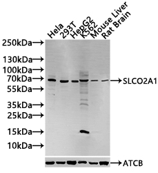 All lanes: SLCO2A1 antibody at 1:1000