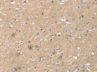 The image on the left is immunohistochemistry of paraffin-embedded Human brain tissue using CSB-PA797391(SMAGP Antibody) at dilution 1/35, on the right is treated with synthetic peptide. (Original magnification: ×200)