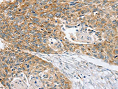 The image on the left is immunohistochemistry of paraffin-embedded Human esophagus cancer tissue using CSB-PA189826(SMC4 Antibody) at dilution 1/40, on the right is treated with synthetic peptide. (Original magnification: ×200)